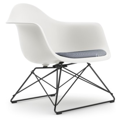 Eames Plastic Armchair RE LAR, White non-RE, Seat upholstery dark blue / ivory, Coated basic dark