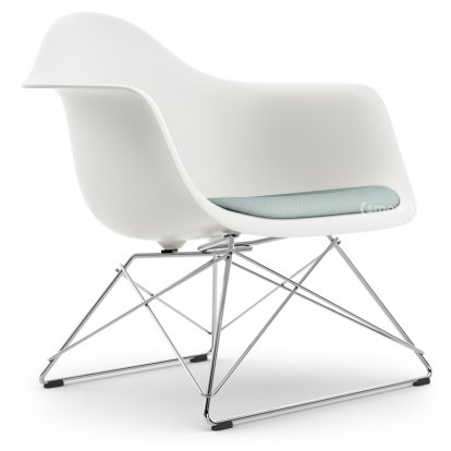 Eames Plastic Armchair RE LAR, White non-RE, Seat upholstery ice blue / ivory, Chrome-plated