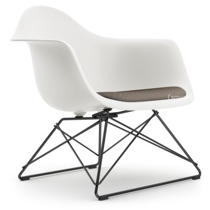 Eames Plastic Armchair RE LAR, White non-RE, Seat upholstery warm grey / moor brown, Coated basic dark
