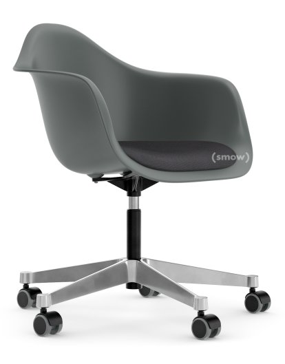 The Eames plastic chairs, including the Eames PACC, belong to those few objects in the history of furniture design that have not only enjoyed a great popularity but effortlessly transform design classics into everyday lifestyle objects. The basic idea for the Eames chair family grew out of a design competition organized in 1950 by the Museum of Modern Art, New York, the "International Competition for Low cost Furniture". For their series of moulded fibreglass chairs Ray and Charles Eames were awarded second place. The series consists of Eames armchairs and Eames side chairs, with a range of bases and available in numerous colours. The Vitra PACC combines an Eames A Shell with a chrome plated five-foot base with casters and is with the accompanying PSCC the work horses of the Eames chairs.