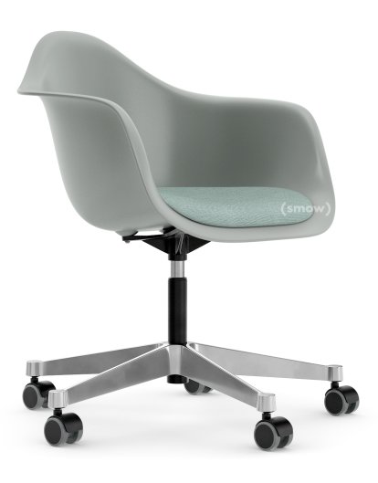 The Eames plastic chairs, including the Eames PACC, belong to those few objects in the history of furniture design that have not only enjoyed a great popularity but effortlessly transform design classics into everyday lifestyle objects. The basic idea for the Eames chair family grew out of a design competition organized in 1950 by the Museum of Modern Art, New York, the "International Competition for Low cost Furniture". For their series of moulded fibreglass chairs Ray and Charles Eames were awarded second place. The series consists of Eames armchairs and Eames side chairs, with a range of bases and available in numerous colours. The Vitra PACC combines an Eames A Shell with a chrome plated five-foot base with casters and is with the accompanying PSCC the work horses of the Eames chairs.