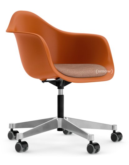Eames Plastic Armchair RE PACC, Rusty orange, With seat upholstery, Cognac / ivory