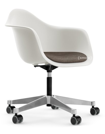 The Eames plastic chairs, including the Eames PACC, belong to those few objects in the history of furniture design that have not only enjoyed a great popularity but effortlessly transform design classics into everyday lifestyle objects. The basic idea for the Eames chair family grew out of a design competition organized in 1950 by the Museum of Modern Art, New York, the "International Competition for Low cost Furniture". For their series of moulded fibreglass chairs Ray and Charles Eames were awarded second place. The series consists of Eames armchairs and Eames side chairs, with a range of bases and available in numerous colours. The Vitra PACC combines an Eames A Shell with a chrome plated five-foot base with casters and is with the accompanying PSCC the work horses of the Eames chairs.