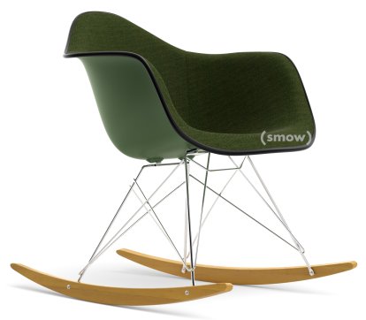 Eames Plastic Armchair RE RAR with Upholstery, Forest, With full upholstery, Nero / forest, Black, Chrome/yellowish maple