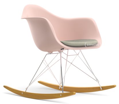 Eames Plastic Armchair RE RAR with Upholstery, Pale rose, With seat upholstery, Warm grey / ivory, Without border welting, Chrome/yellowish maple