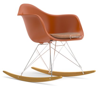 Eames Plastic Armchair RE RAR with Upholstery, Rusty orange, With seat upholstery, Cognac / ivory, Without border welting, Chrome/yellowish maple