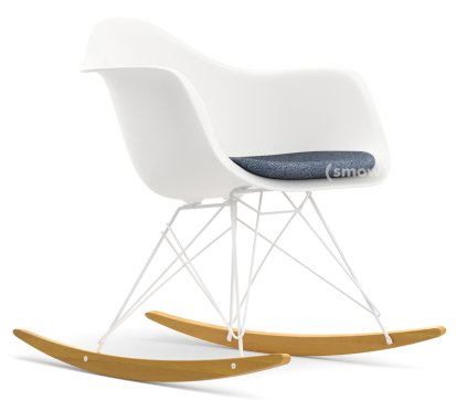 Eames Plastic Armchair RE RAR with Upholstery, White non-RE, With seat upholstery, Dark blue / ivory, Without border welting, White/yellowish maple