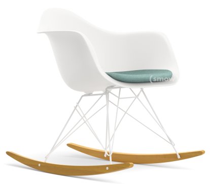 Eames Plastic Armchair RE RAR with Upholstery, White non-RE, With seat upholstery, Ice blue / ivory, Without border welting, White/yellowish maple