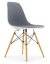 ...Eksempelvis har 'Eames DSR - Dining height Side chair Rod base' og 'Eames DSW - Dining height Side chair Wood base' samme S-skal, men forskellige typer stel...