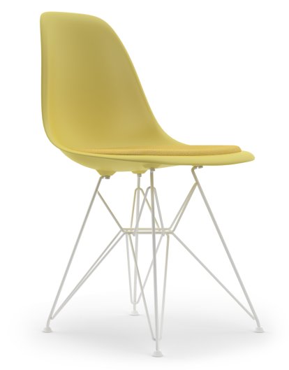 Eames Plastic Side Chair RE DSR, Citron, With seat upholstery, Yellow / ivory, Standard version - 43 cm, Coated white