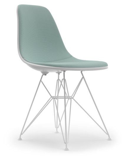Eames Plastic Side Chair RE DSR, Cotton white, With full upholstery, Ice blue / ivory, Standard version - 43 cm, Coated white