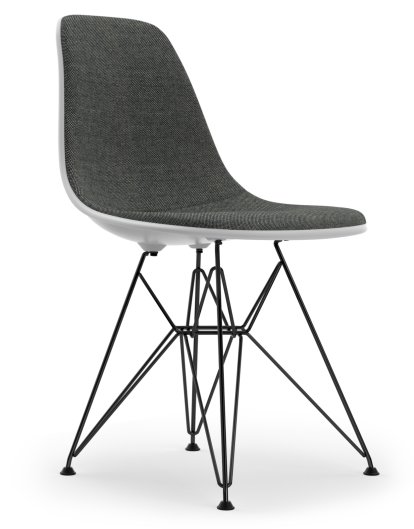 Eames Plastic Side Chair RE DSR Cotton white|With full upholstery|Nero / ivory|Standard version - 43 cm|Coated basic dark
