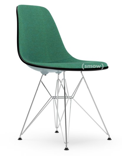 Eames Plastic Side Chair RE DSR Ice grey|With full upholstery|Mint / forest|Standard version - 43 cm|Chrome-plated