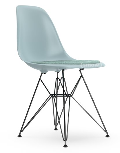 Eames Plastic Side Chair RE DSR Ice grey|With seat upholstery|Ice blue / ivory|Standard version - 43 cm|Coated basic dark