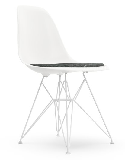 Eames Plastic Side Chair RE DSR White non-RE|With seat upholstery|Nero / ivory|Standard version - 43 cm|Coated white