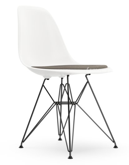Eames Plastic Side Chair RE DSR, White non-RE, With seat upholstery, Warm grey / moor brown, Standard version - 43 cm, Coated basic dark