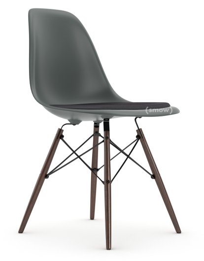 Eames Plastic Side Chair RE DSW, Granite grey, With seat upholstery, Dark grey, Standard version - 43 cm, Dark maple