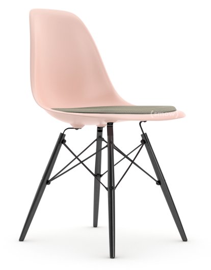 Eames Plastic Side Chair RE DSW, Pale rose, With seat upholstery, Warm grey / ivory, Standard version - 43 cm, Black maple