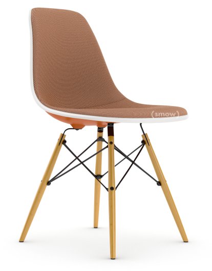Eames Plastic Side Chair RE DSW Rusty orange|With full upholstery|Cognac / ivory|Standard version - 43 cm|Yellowish maple