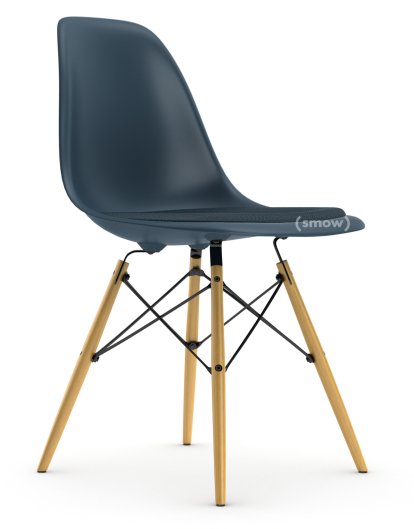 Eames Plastic Side Chair RE DSW, Sea blue, With seat upholstery, Sea blue / dark grey, Standard version - 43 cm, Ash honey tone