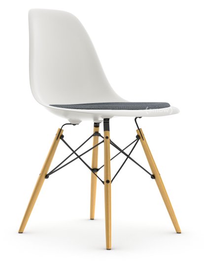 Eames Plastic Side Chair RE DSW White non-RE|With seat upholstery|Dark blue / ivory|Standard version - 43 cm|Ash honey tone
