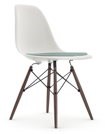 Eames Plastic Side Chair RE DSW White non-RE|With seat upholstery|Ice blue / ivory|Standard version - 43 cm|Dark maple