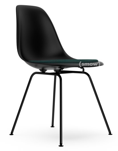 Eames Plastic Side Chair RE DSX, Deep black, With seat upholstery, Petrol / moor brown, Standard version - 43 cm, Coated basic dark