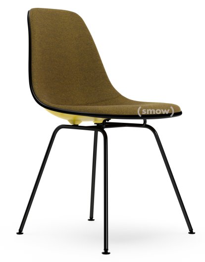 Eames Plastic Side Chair RE DSX Mustard|With full upholstery|Mustard / dark grey|Standard version - 43 cm|Coated basic dark
