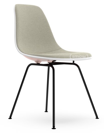 Eames Plastic Side Chair RE DSX, Pale rose, With full upholstery, Warm grey / ivory, Standard version - 43 cm, Coated basic dark
