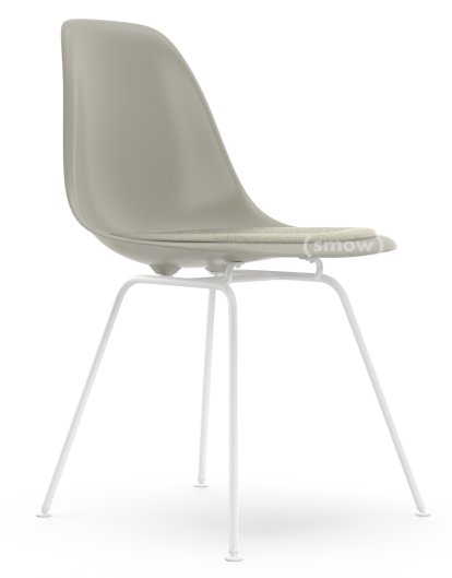 Eames Plastic Side Chair RE DSX, Pebble, With seat upholstery, Warm grey / ivory, Standard version - 43 cm, Coated white