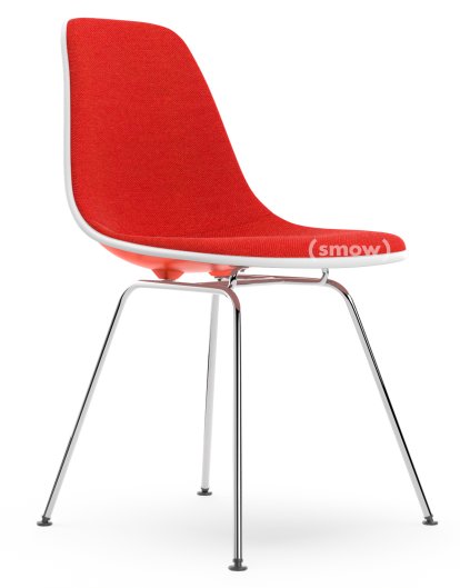 Eames Plastic Side Chair RE DSX Red (poppy red)|With full upholstery|Coral / poppy red |Standard version - 43 cm|Chrome-plated