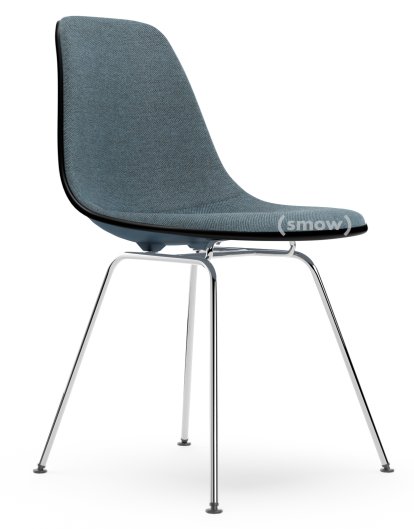 Eames Plastic Side Chair RE DSX, Sea blue, With full upholstery, Ice blue / moor brown, Standard version - 43 cm, Chrome-plated
