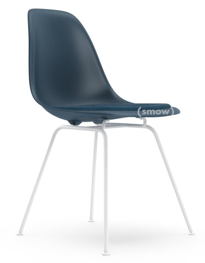 Eames Plastic Side Chair RE DSX, Sea blue, With seat upholstery, Sea blue / dark grey, Standard version - 43 cm, Coated white