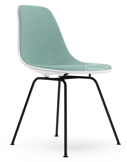 Eames Plastic Side Chair RE DSX White non-RE|With full upholstery|Ice blue / ivory|Standard version - 43 cm|Coated basic dark