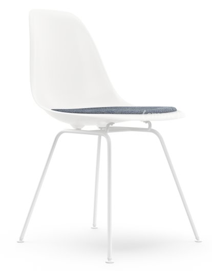 Eames Plastic Side Chair RE DSX, White non-RE, With seat upholstery, Dark blue / ivory, Standard version - 43 cm, Coated white