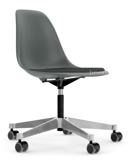 Eames Plastic Side Chair RE PSCC, Granite grey, With seat upholstery, Dark grey