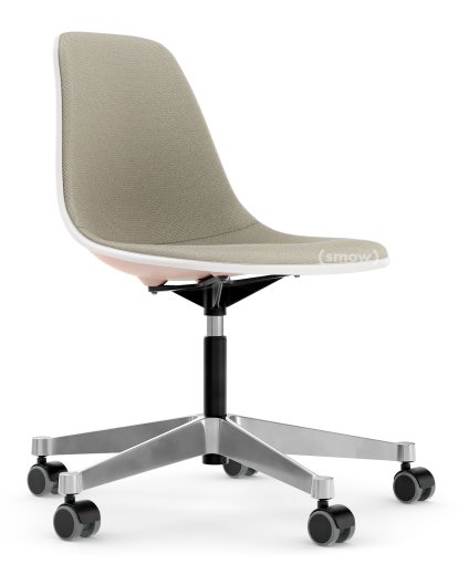 Eames Plastic Side Chair RE PSCC Pale rose|With full upholstery|Warm grey / ivory