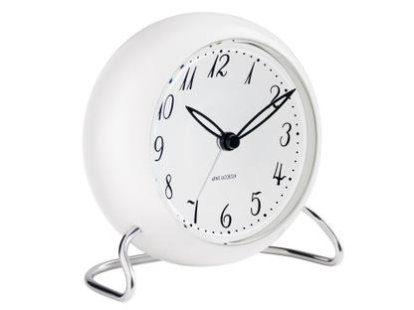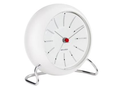 Arne Jacobsen originally designed the City Hall wall clock for the town hall of Rødovre in 1956, now the dial of this clock can be found in the AJ City Hall Bordur by Rosendahl. The AJ City Hall Bordur is not only a decorative element, but also has the necessary functions such as alarm, snooze function and light. A gentle hand movement over the clock activates both the light and the snooze function.