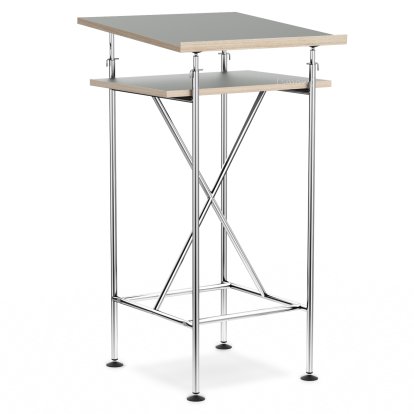 High Desk Milla, 50cm, Chrome, Linoleum ash grey (Forbo 4132) with oak edges