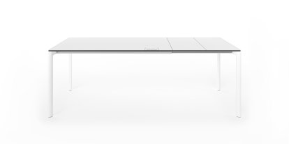 The structure and particularly strong legs are available in anodized aluminium or, in the monochrome version, with paint in colour of the table top.