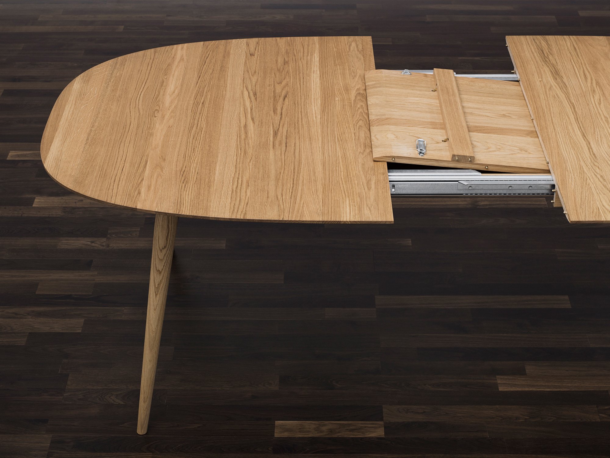 As the number of people seated varies depending on the situation, many people like to use extendable dining tables or dining tables with extension leaves. With an additional table length of 60 cm, two extra people easily have more space. Ideally, a table can be easily pulled out with one hand. For the mechanics, parts made of metal, such as aluminium are much preferential to plastic components.
