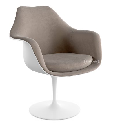 Saarinen Tulip Armchair, Static, Upholstered inner shell and seat cushion, White, Beige (Eva 177)
