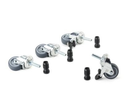The industrial castors turn a static Eiermann table frame into mobile office element that can be effortlessly transferred from A to B and back again as required. And with each set conatining two castors with a brake, security is also included. Through the castors the table top height is raised by 70 mm