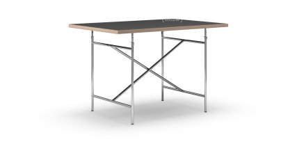Eiermann Table, Linoleum black (Forbo 4023) with oak edge, 120 x 80 cm, Chrome, Vertical, centred (Eiermann 2), 80 x 66 cm