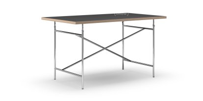 Eiermann Table, Linoleum black (Forbo 4023) with oak edge, 160 x 80 cm, Chrome, Vertical,  offset (Eiermann 2), 135 x 66 cm
