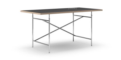 Eiermann Table, Linoleum black (Forbo 4023) with oak edge, 160 x 80 cm, Chrome, Vertical,  offset (Eiermann 2), 135 x 66 cm