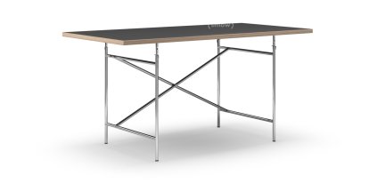 Eiermann Table, Linoleum black (Forbo 4023) with oak edge, 160 x 80 cm, Chrome, Vertical, offset (Eiermann 2), 100 x 66 cm