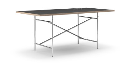 Eiermann Table, Linoleum black (Forbo 4023) with oak edge, 160 x 80 cm, Chrome, Vertical,  offset (Eiermann 2), 135 x 66 cm