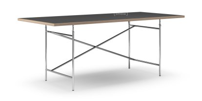 Eiermann Table, Linoleum black (Forbo 4023) with oak edge, 200 x 90 cm, Chrome, Vertical, offset (Eiermann 2), 135 x 66 cm