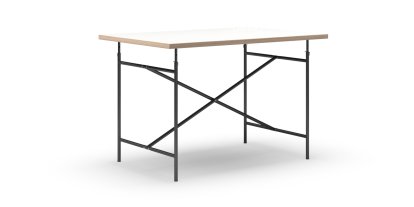 Eiermann Table White melamine with oak edge|120 x 80 cm|Black|Vertical,  centred (Eiermann 2)|100 x 66 cm
